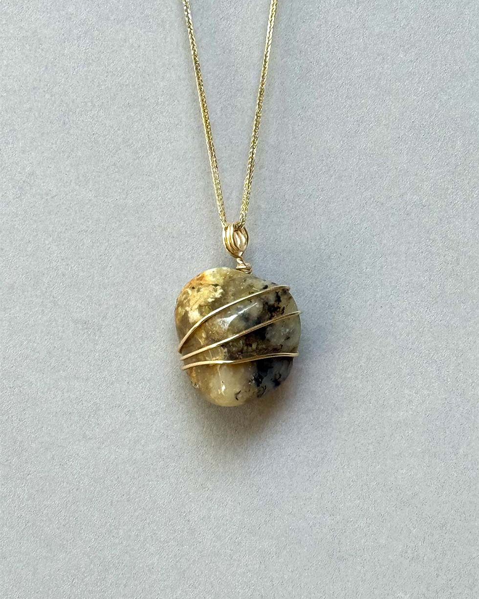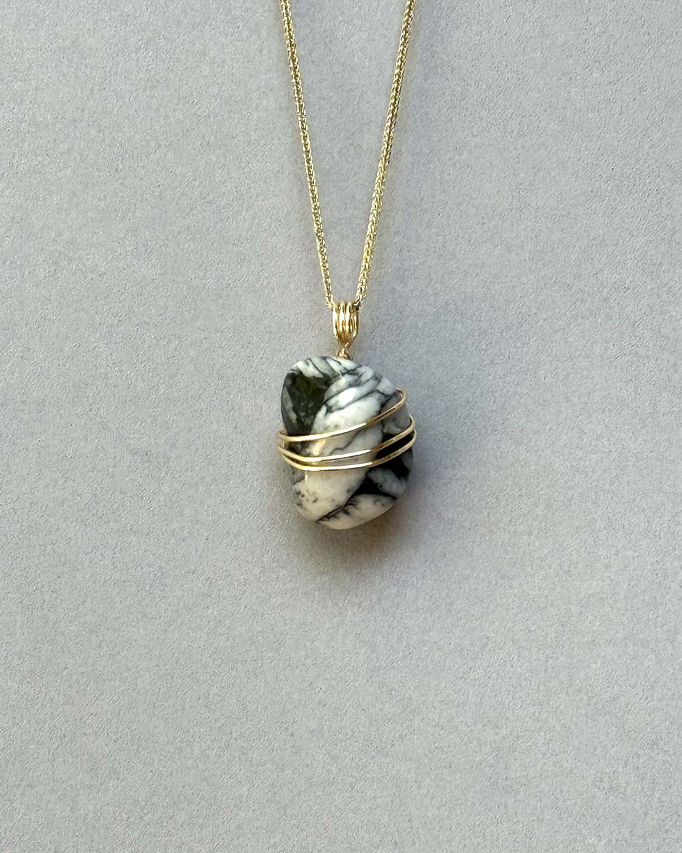 A reminder that all pedants are hand-selected and hand-wrapped, making each piece unique. "True perfection seems imperfect,
